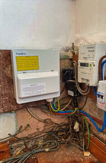 Replacement of outdated or unsafe metre panels, repair of exposed wiring, damaged enclosures, and proper circuit labelling for safety compliance.